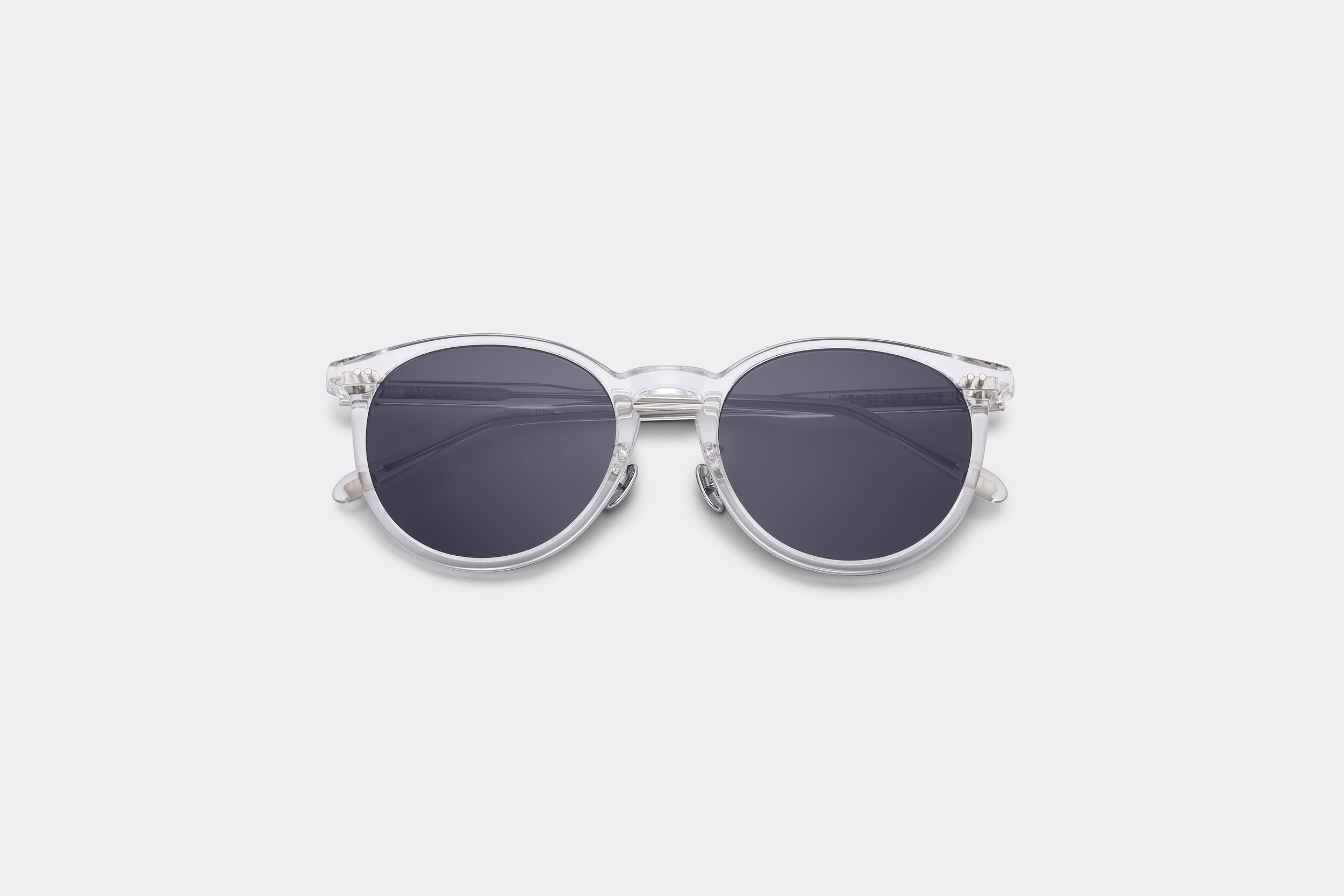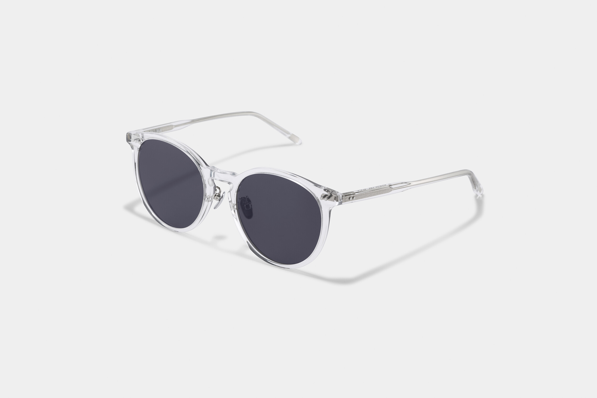 오버핏 라운드쉐입 실루엣과 반투명 클리어 컬러가 특징이며, 99.9% UV차단이되는 블랙렌즈를 사용하였습니다. 투닷트 실버 리벳과 템플팁 M&D 레터 로고가 더해져 브랜드의 아이덴티티를 강조합니다.