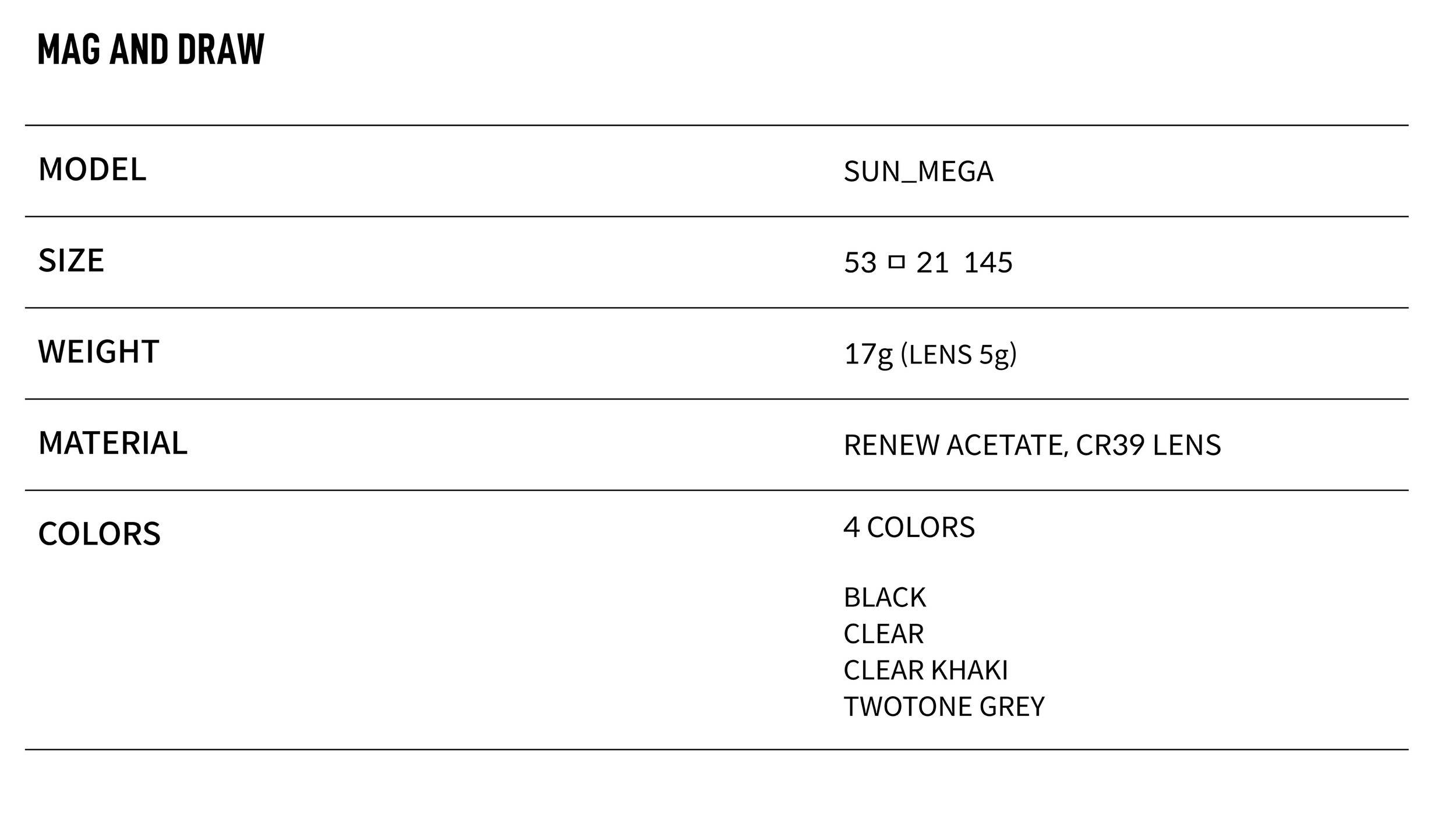 매그앤드로우의 2024년 컬렉션을 통해 선보이는 메가(MEGA) 선글라스를 소개합니다. 오버사이즈 스퀘어디자인과 리뉴아세테이트소재로 가벼운 착용감을 선사합니다. 실버 투닷트 리벳으로 모던한 클래식 느낌을 더해줍니다.